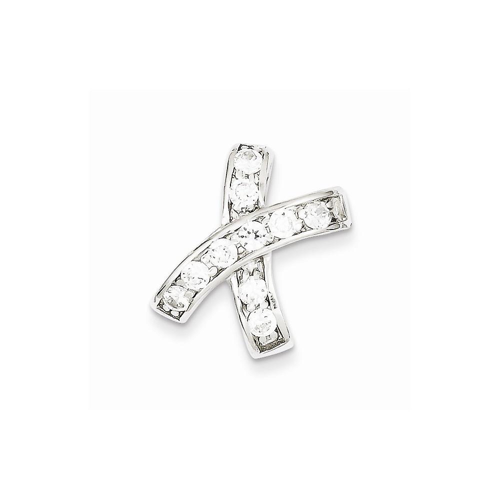 925 Sterling Silver Polished Hidden bail Rhodium Plated Cubic Zirconia Pendant Necklace Slide 17.35x13.31mm Wide-Pendant