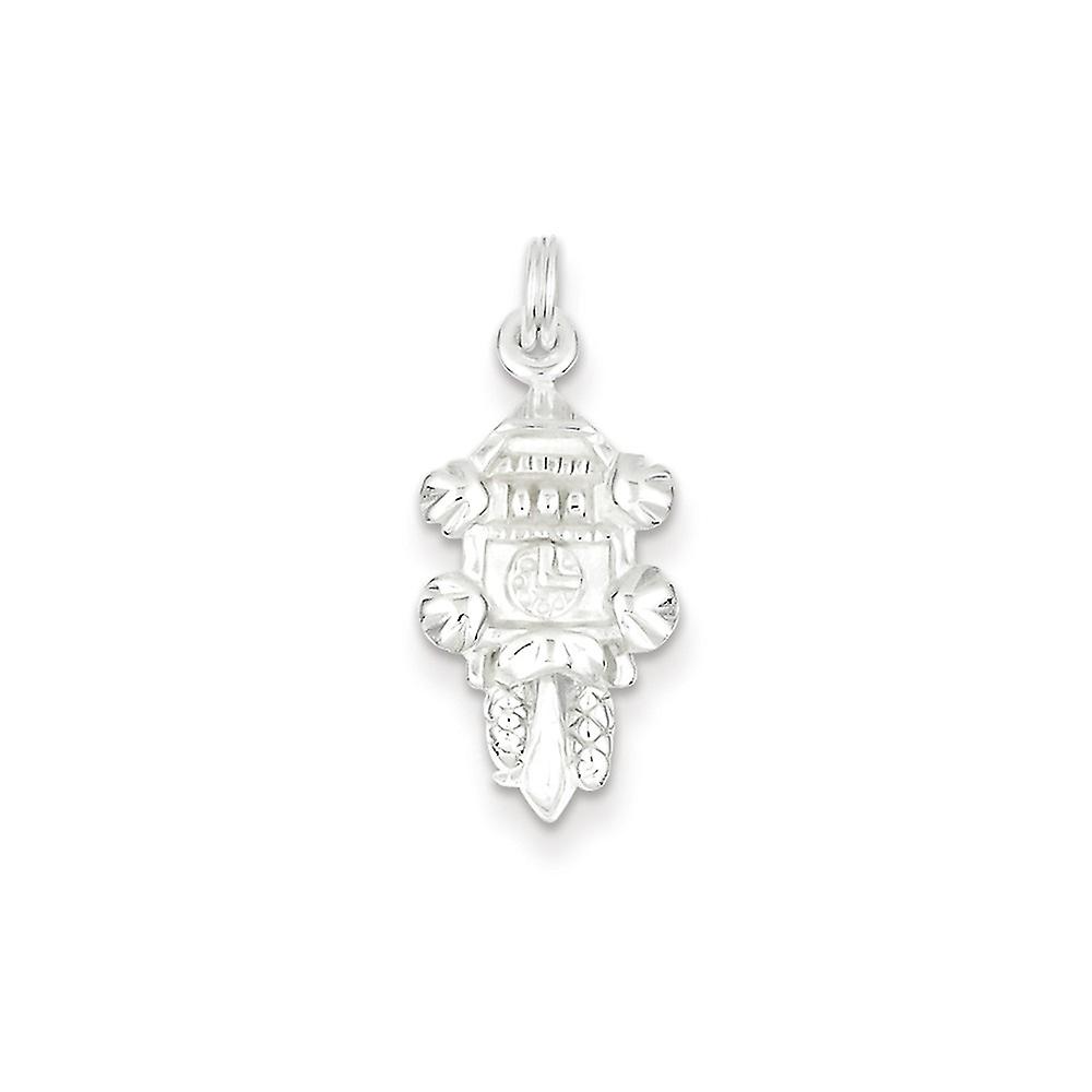925 Sterling Silver Polished Cuckoo Clock Charm 24.5x10.55mm Wide Pendant Necklace for Women