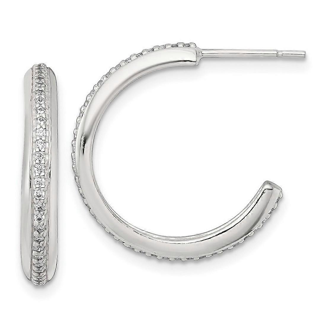 925 Sterling Silver Polished 21.5x3.5mm Cubic Zirconia Post C hoop Earrings 21.6x17.3mm Wide 3.4mm Thick-Hoop Earring fo