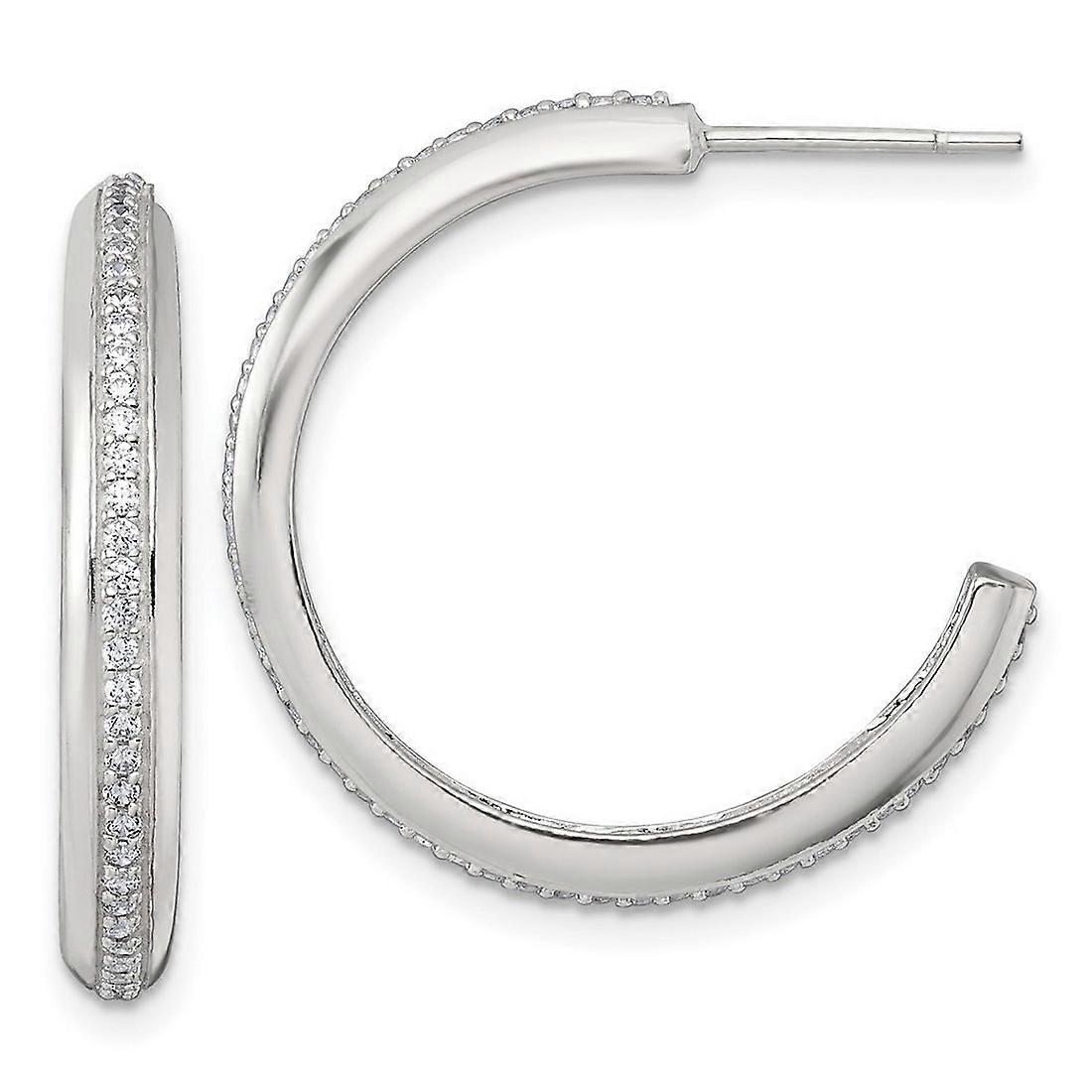 925 Sterling Silver Polished 26.5x3.5mm Cubic Zirconia Post C hoop Earrings 26.4x23.4mm Wide 3.7mm Thick-Hoop Earring fo