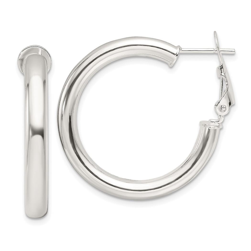 925 Sterling Silver Polished 30x4mm Omega Back Round Hoop Earrings 30x29.9mm Wide 4mm Thick-Hoop Earring for Women