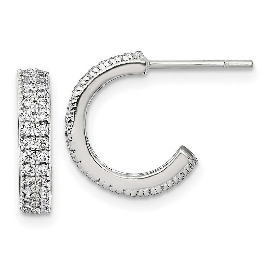 925 Sterling Silver Polished 3.2mm Cubic Zirconia Post C hoop Earrings 13.7x13.1mm Wide 3.1mm Thick-Hoop Earring for Wom