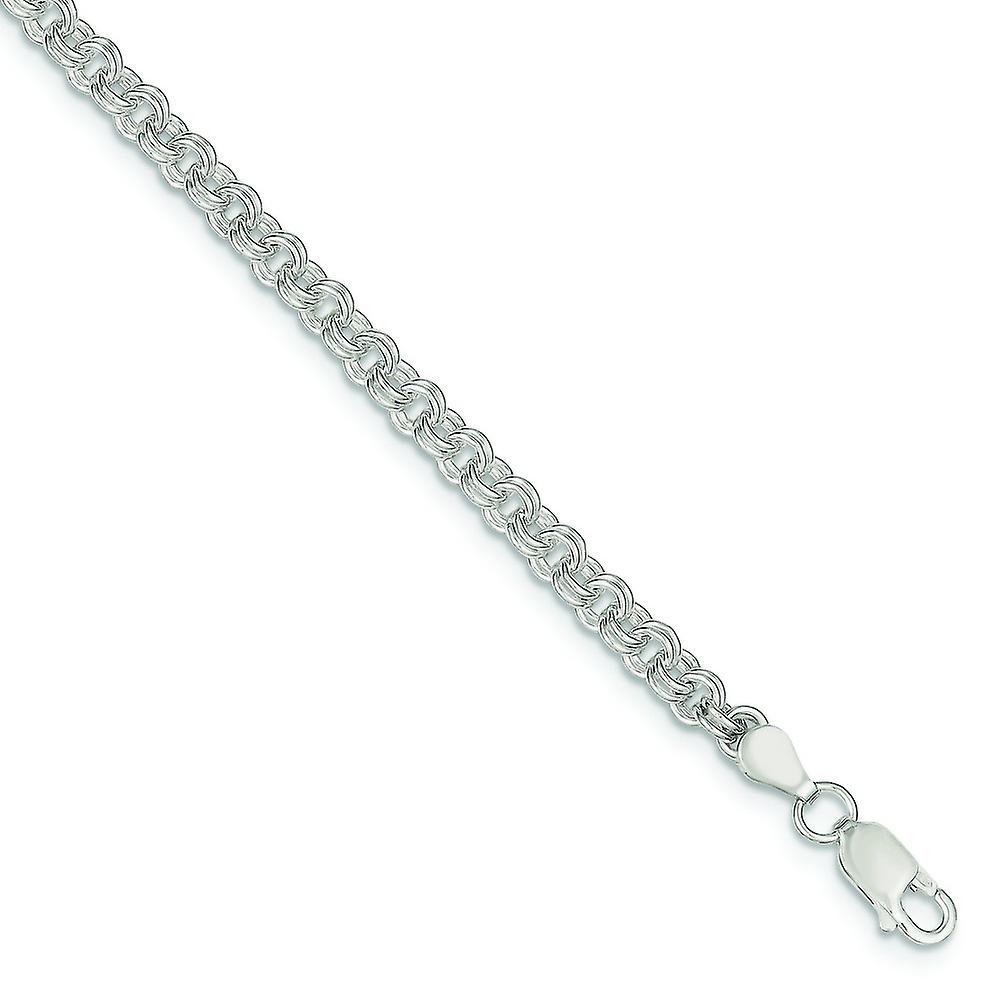 925 Sterling Silver Polished 4mm Double Link Charm Bracelet Lobster Claw-Link-Charm-Bracelet for Women - Length: 7 to 8