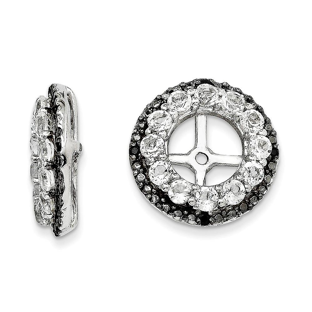925 Sterling Silver White Topaz and Black Sapphire Earrings Jacket 13x13mm Wide Earring-Jacket for Women