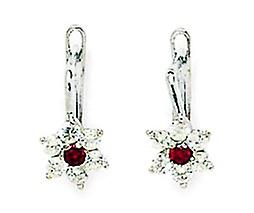 Sterling Silver Plated January red 1.5mm Cubic Zirconia Flower Leverback Earrings - Measures 13x6mm - in Sterling Silver Rhodium Plated - - [ Potential Enhancement Methods: cubic zirconia ] - Synthetic. Some are covered with a product that makes the stone more durable. - [ Care and Handling: cubic zirconia ] - Clean with warm soapy water and a soft cloth. -