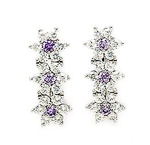 925 Sterling Silver Plated February Purple CZ Triple Leverback Earrings 17x7mm Stud Earring for Women
