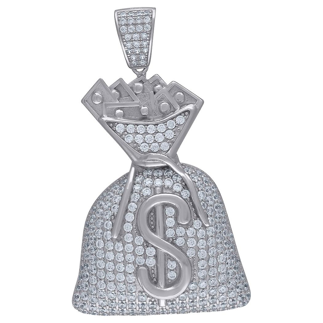 925 Sterling Silver Mens Cubic Zirconia Cash Money Bag With Dollar Sign Charm Pendant Necklace for Men
