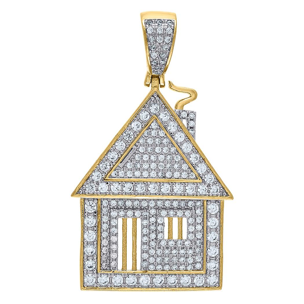 925 Sterling Silver Mens Two tone Cubic Zirconia House Pendant Charm Necklace for Men - 7.5 Grams