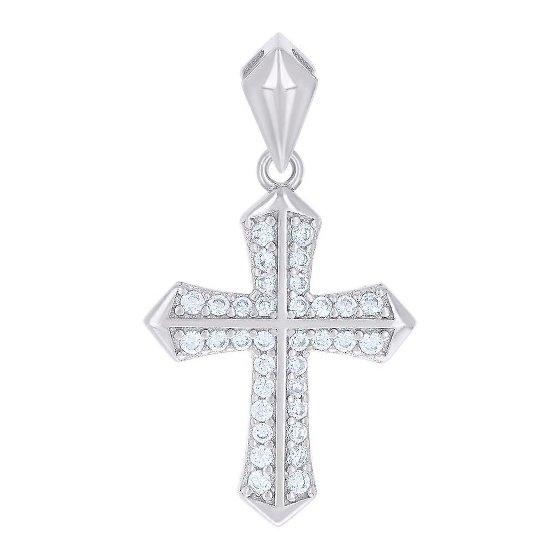 925 Sterling Silver Unisex Cubic Zirconia Cross Religious Charm Pendant Necklace 26.3x14.5mm Wide-Pendant for Women