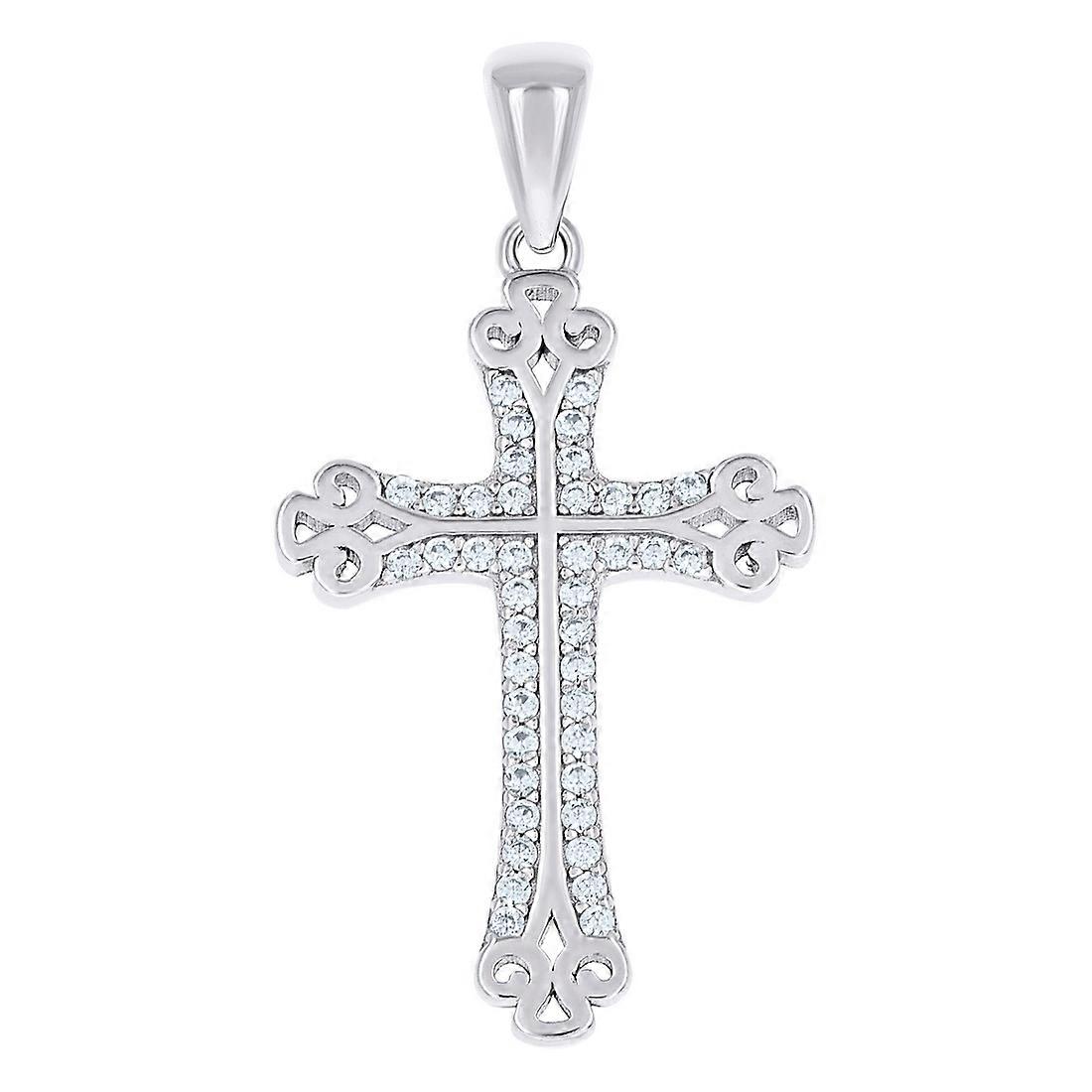 925 Sterling Silver Unisex Cubic Zirconia Cross Religious Charm Pendant Necklace 34x17.7mm Wide-Pendant for Women