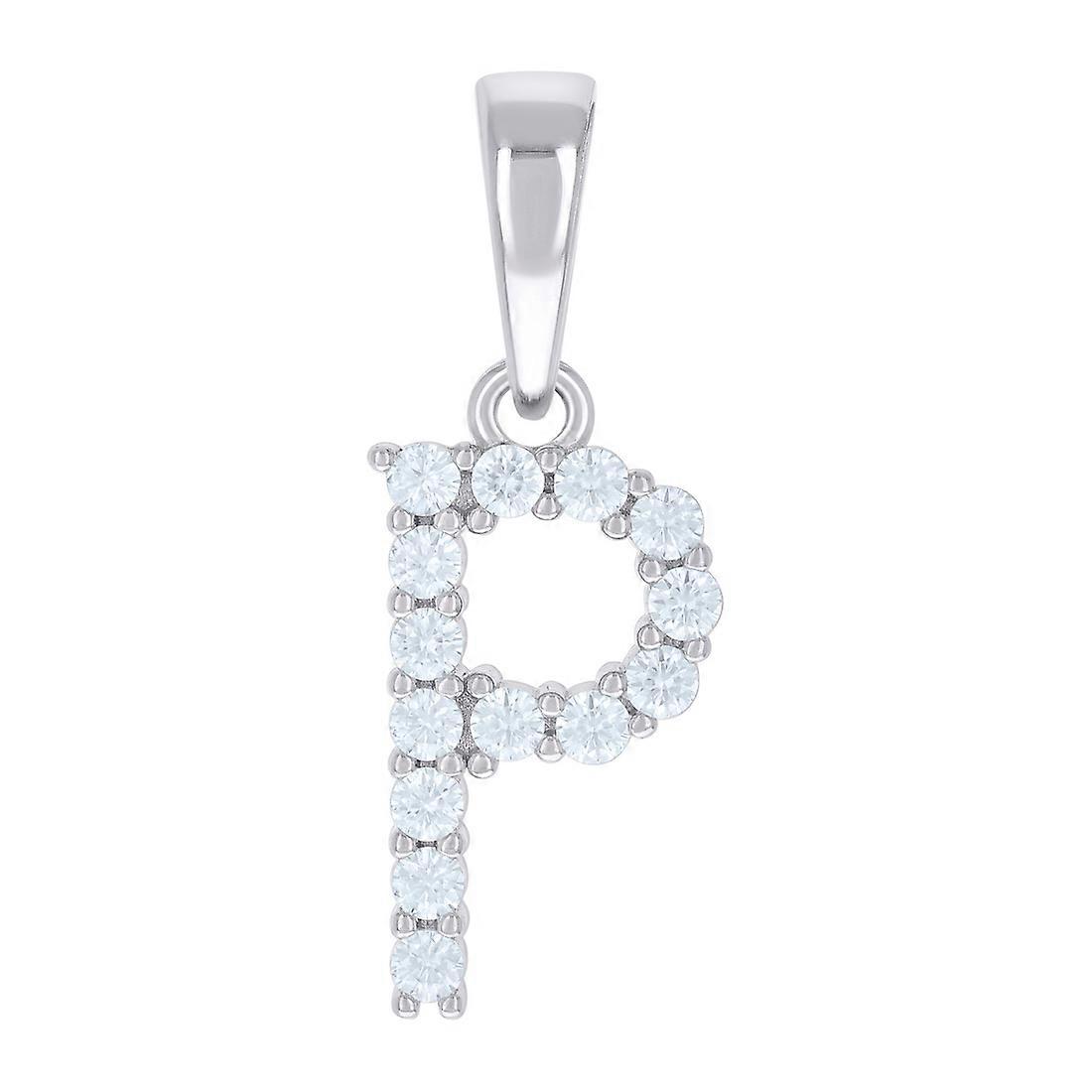 925 Sterling Silver Unisex Cubic Zirconia Letter Name Personalized Monogram Initial P Alphabet Charm Pendant Necklace 24