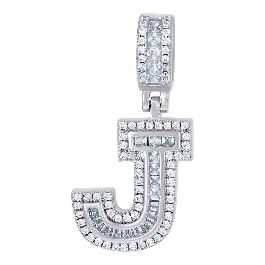 925 Sterling Silver Unisex Round and Baguette Cubic Zirconia Letter Name Personalized Monogram Initial Alphabet J Pendan
