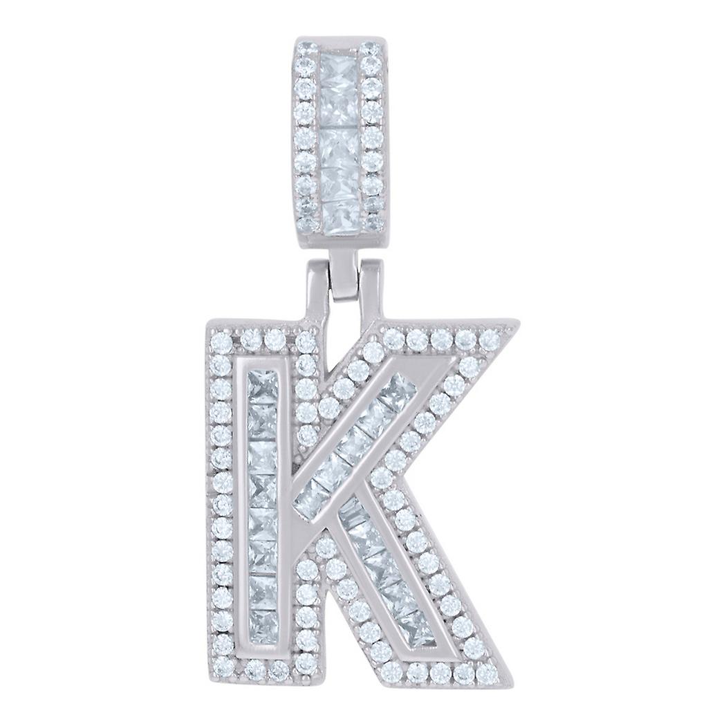 925 Sterling Silver Unisex Round and Baguette Cubic-zirconia Initial Alphabet K Pendant Charm - 4.8 Grams In Sterling Silver - - This Item Does Not Ship With a Chain - - [ Care and Handling: zircon ] - Avoid abrasives, rough handling and exposure to excessive light. Clean with warm soapy water and a soft cloth. -