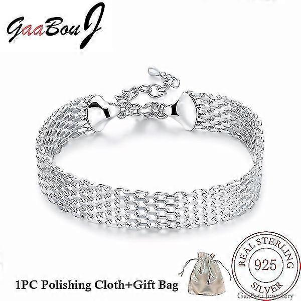 925 Sterling Silver Lucky Bracelet Cuff Women Girls