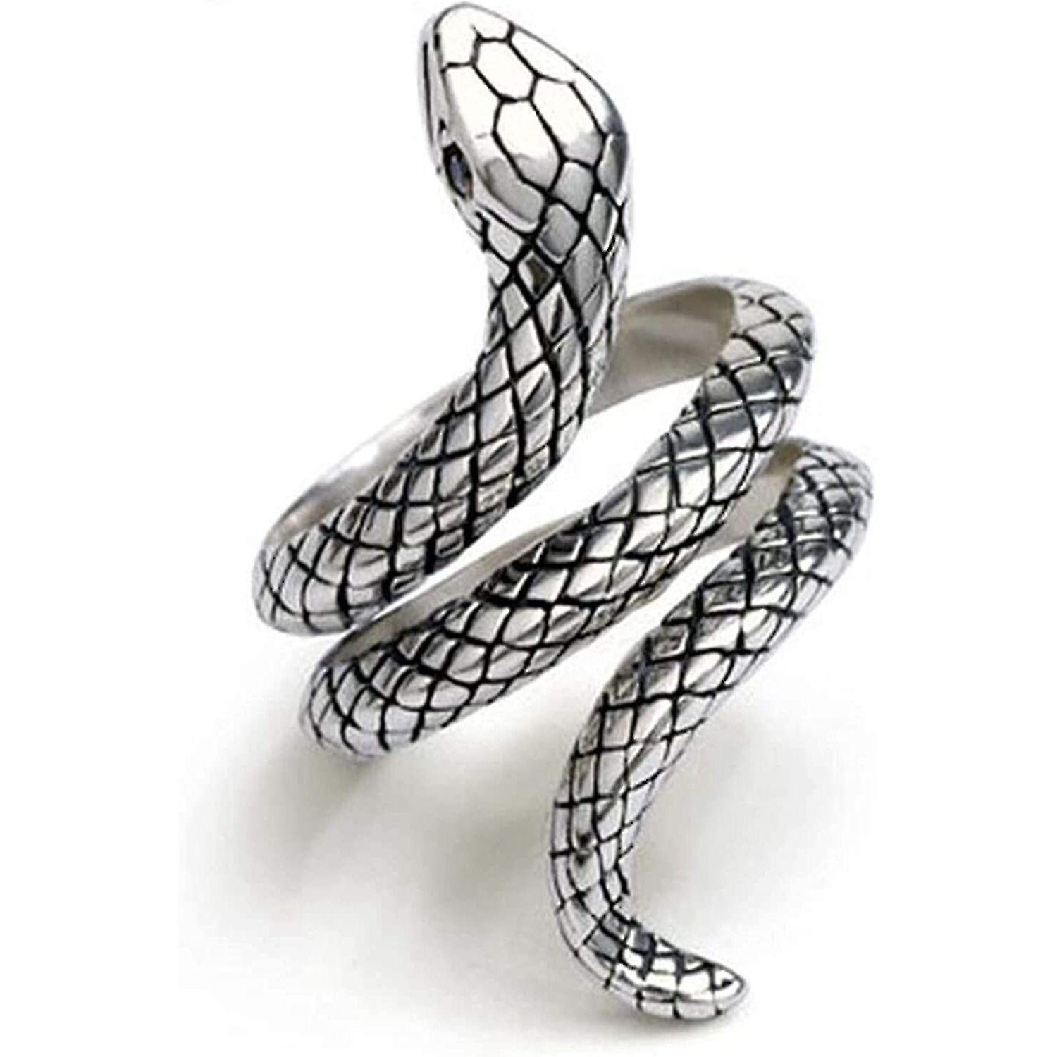 925 Sterling Silver Rings Adjustable, Vintage Fashion Punk Style Personality Snake Shape Ring Unisex
