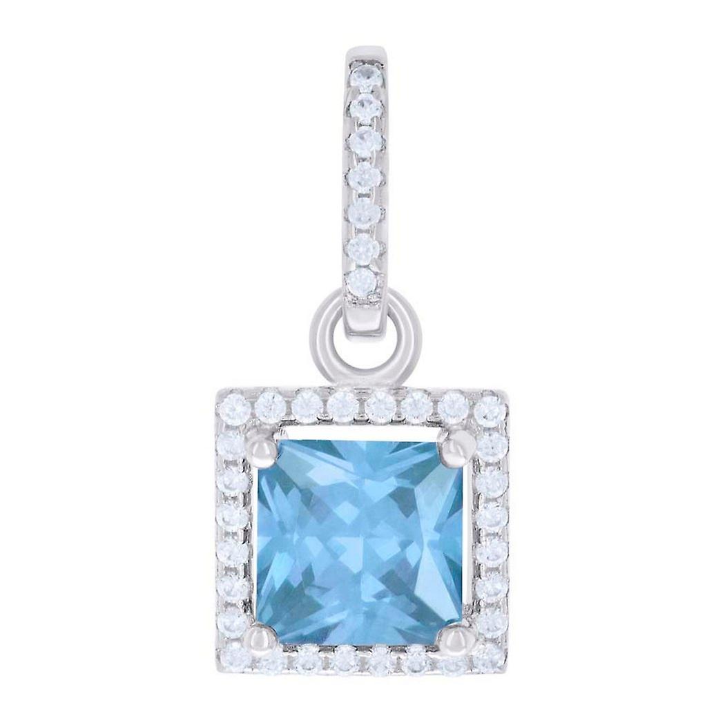 925 Sterling Silver Womens Aqua Cubic Zirconia Fashion Square Charm Pendant Necklace 18x9.2mm Wide-Pendant for Women