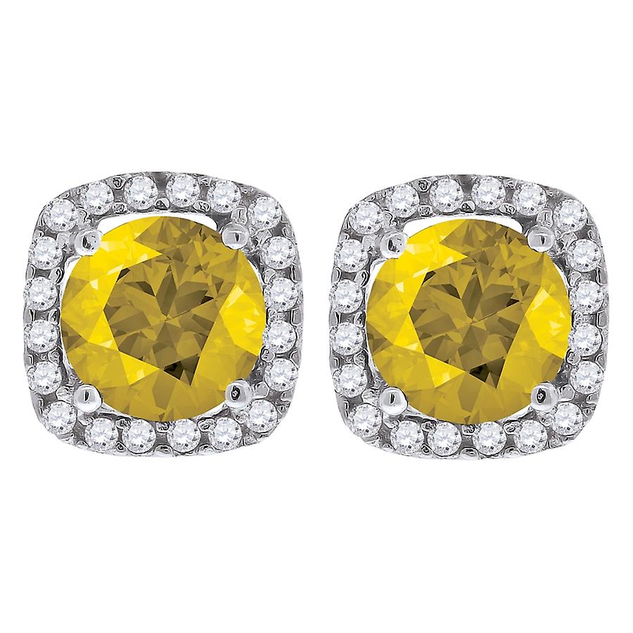 925 Sterling Silver Womens Yellow Cubic Zirconia Square Stud Earrings 10.5x10.5mm Wide-Stud Earring for Women