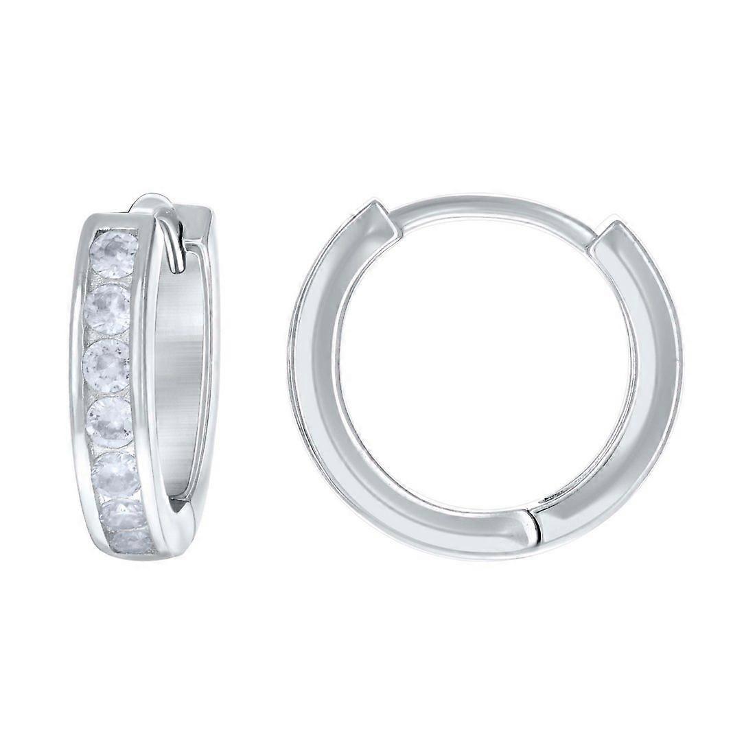 925 Sterling Silver Womens Yellow Cubic Zirconia Single Row CZ Hoop Earrings 14.2x15.2mm Wide-Hoop Earring for Women