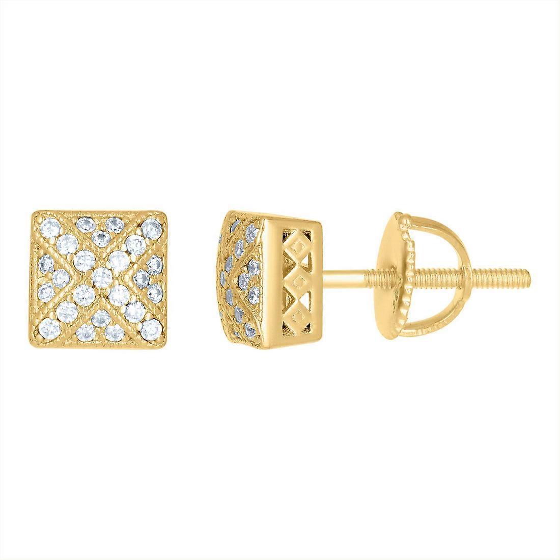 925 Sterling Silver Womens Yellow tone 0.21ct Moissanite Square Fashion Stud Earrings 6.2x6.1mm Wide-Stud Earring for Wo