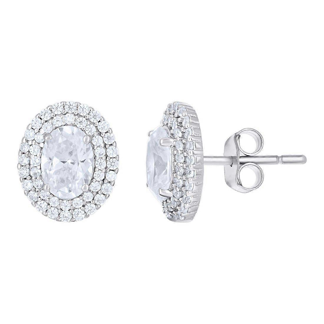 925 Sterling Silver Womens Oval Round Cubic Zirconia-Oval Fashion Stud Earrings 11.5x9.6mm Wide-Stud Earring for Women