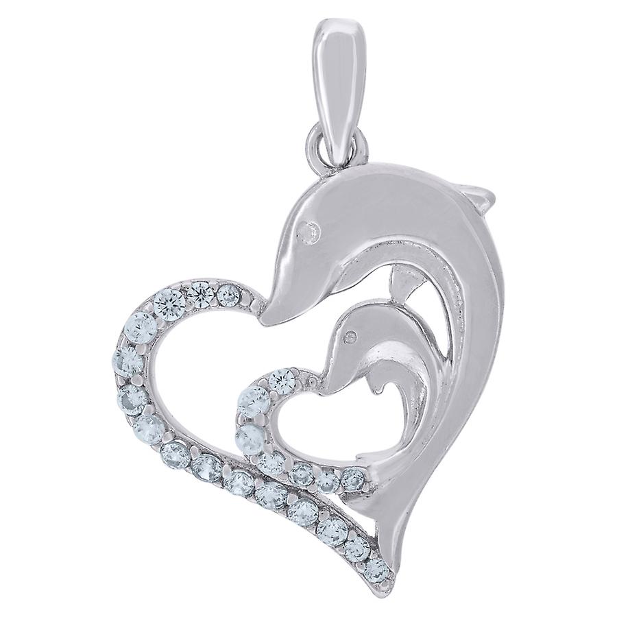 925 Sterling Silver Womens Cubic Zirconia Dolphin Love Heart Charm Pendant Necklace-Pendant for Women