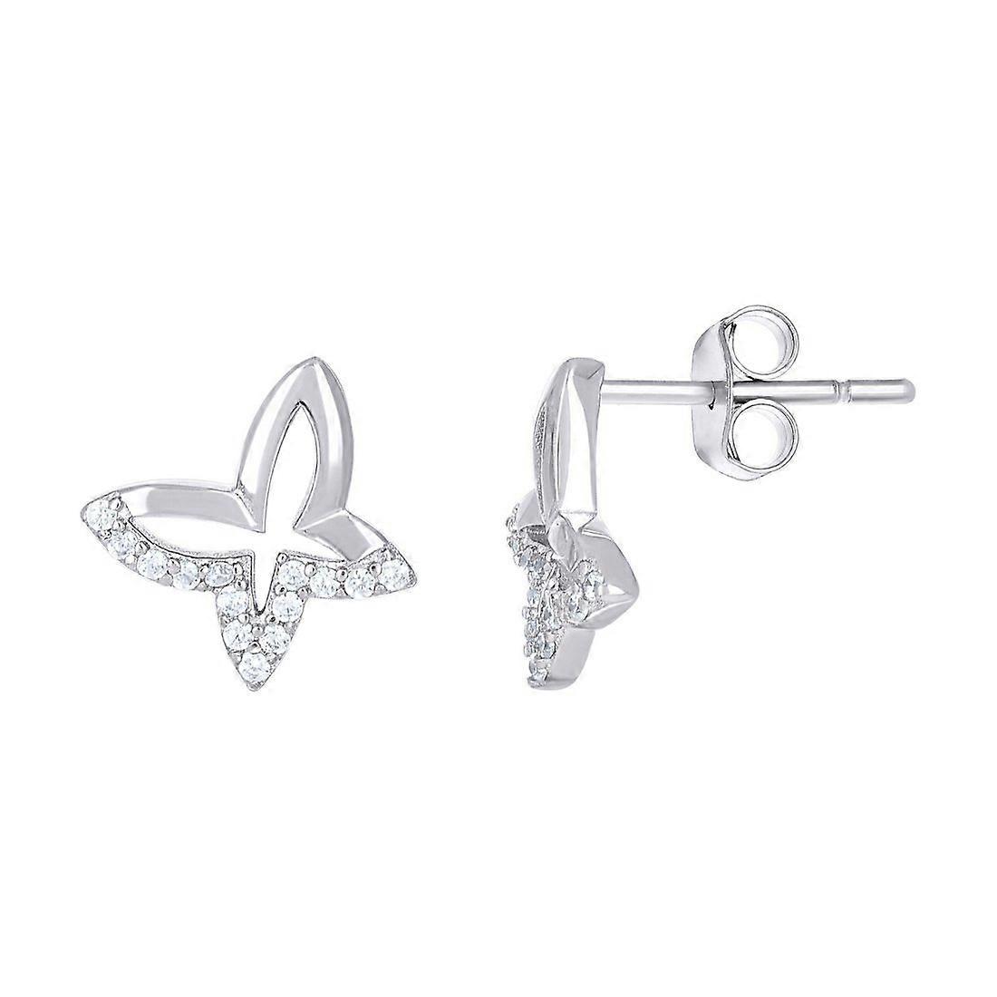 925 Sterling Silver Womens Cubic Zirconia Butterfly Angel Wings Stud Earrings 8.4x9.5mm Wide-Stud Earring for Women