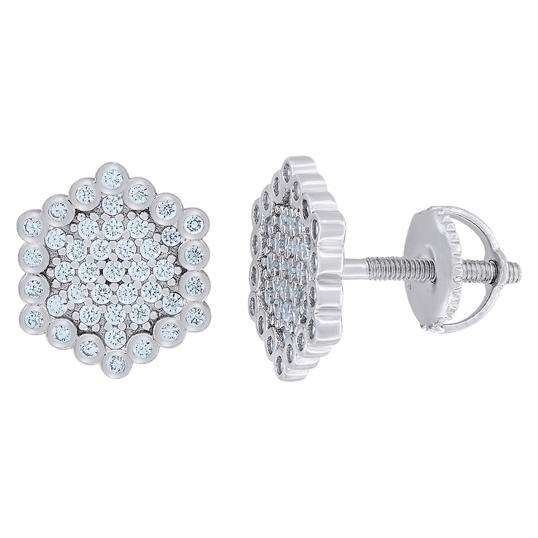925 Sterling Silver Womens Cubic Zirconia Hexagon Stud Earrings 9.8x11mm Wide-Stud Earring for Women