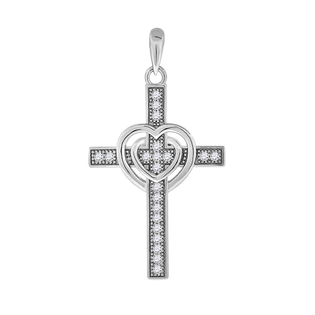 925 Sterling Silver Womens Cubic Zirconia Love Heart & Cross Religious Charm Pendant Necklace-Pendant for Women