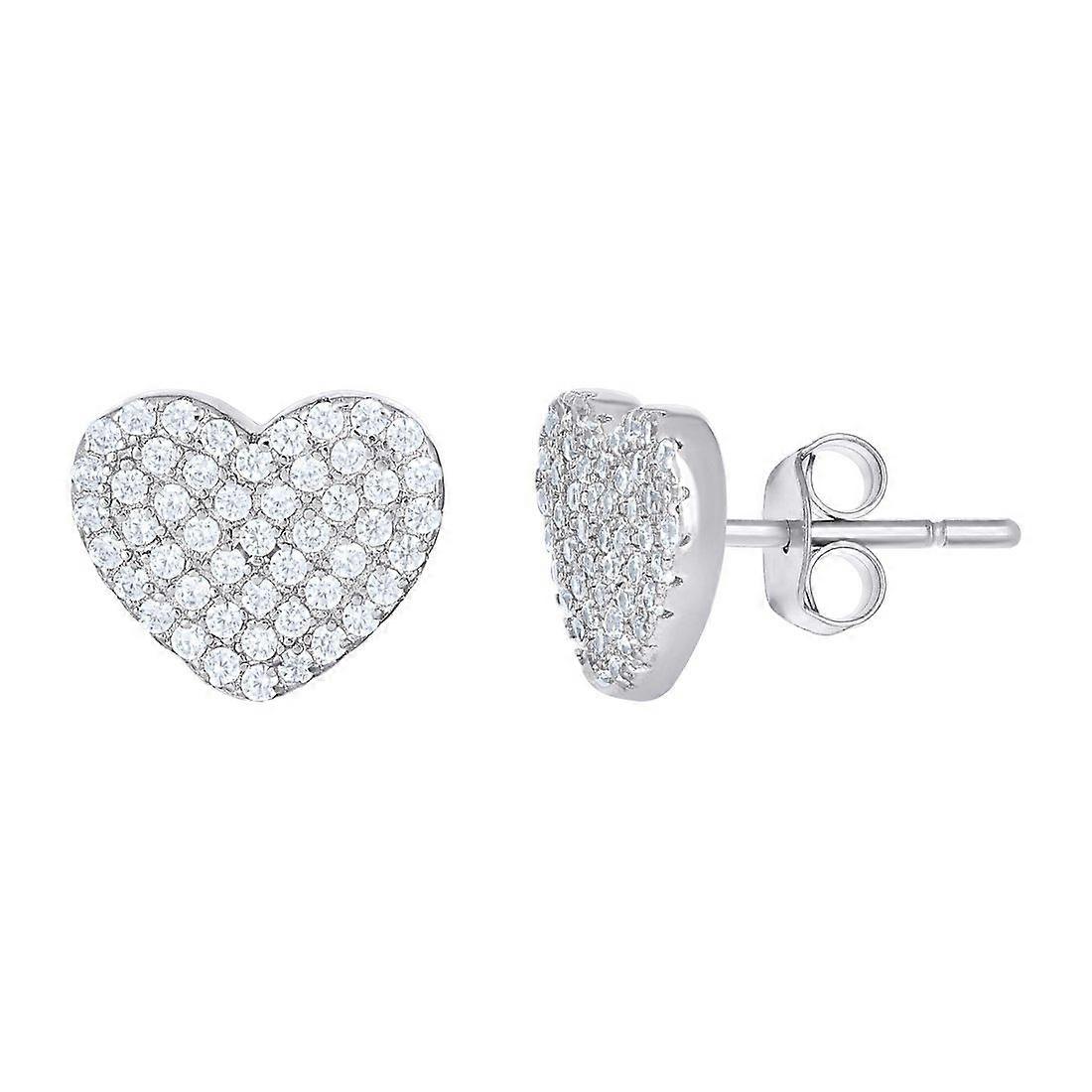 925 Sterling Silver Womens Cubic Zirconia Love Heart Stud Earrings 8.7x10.2mm Wide-Stud Earring for Women