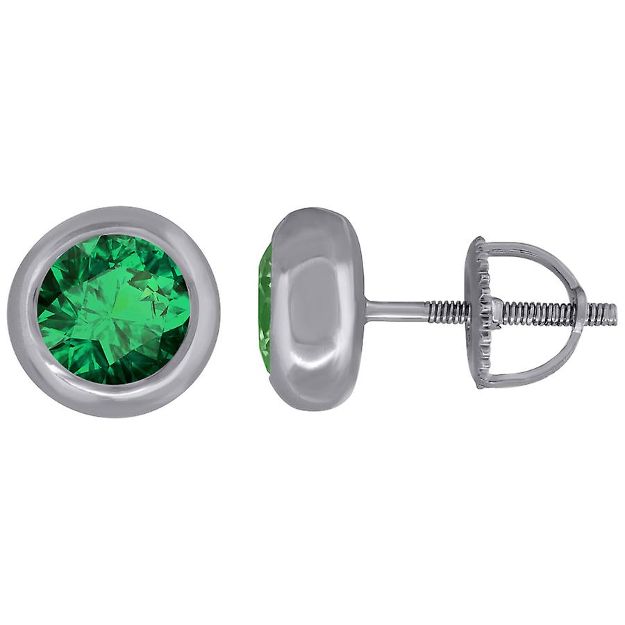925 Sterling Silver Womens Green Cubic Zirconia Round Bezel Setting Studs Earrings 8.2mm Stud Earring for Women