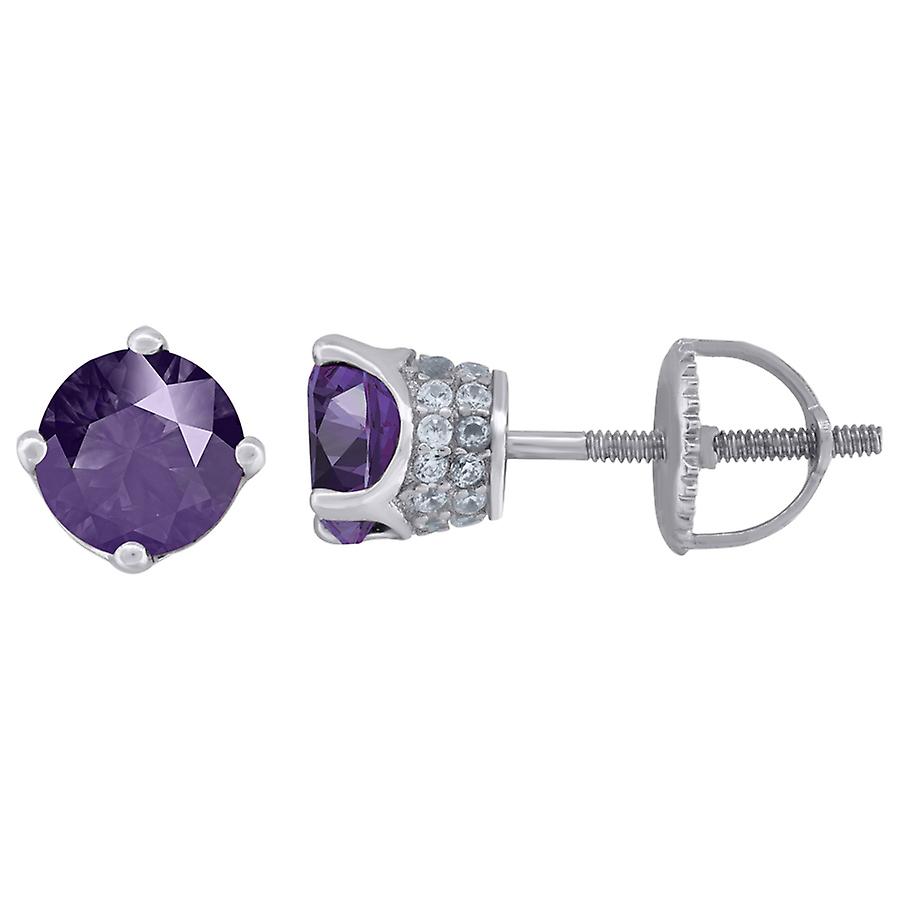 925 Sterling Silver Womens Purple Cubic Zirconia 6mm Round Classic Studs Earrings Stud Earring for Women