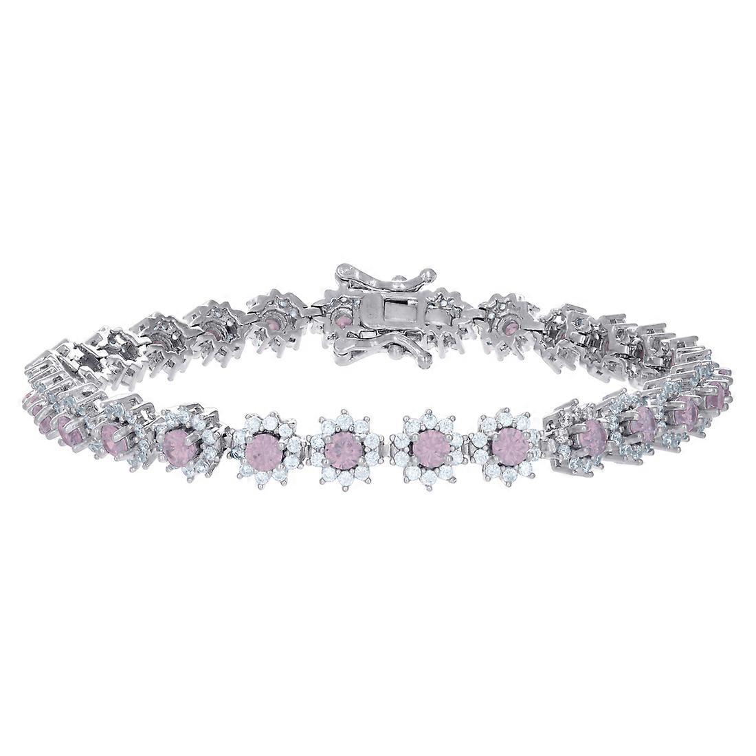 925 Sterling Silver Womens Pink White Cubic Zirconia Flower Link Fashion Bracelet 7 Inch 6.5x6.5mm Wide-Link-Bracelet fo