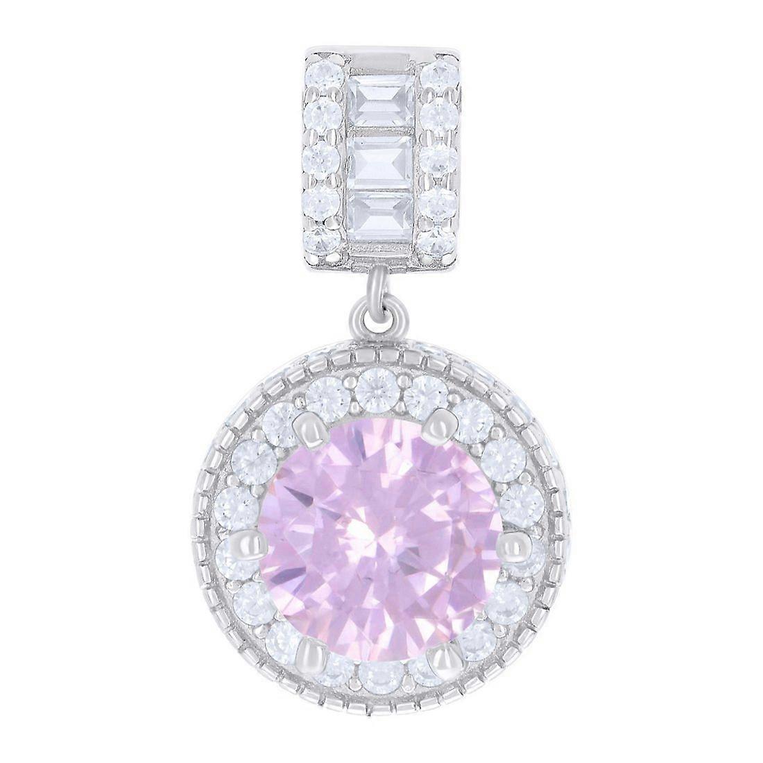 925 Sterling Silver Womens Pink White Baguette Round Cubic Zirconia Fashion Charm Pendant Necklace 19x10.8mm Wide-Pendan