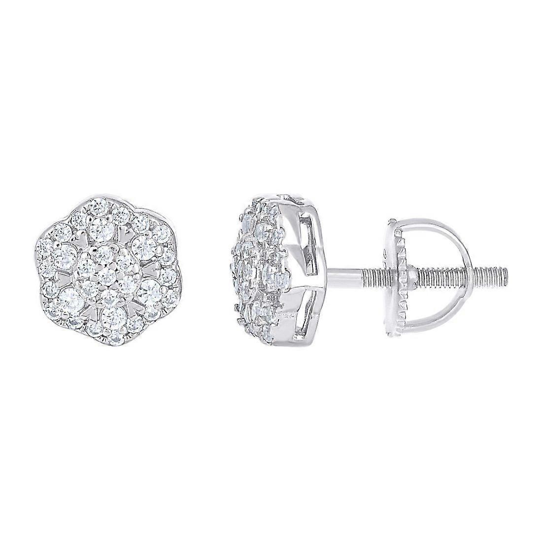 925 Sterling Silver Womens Moissanite Flower Fashion Stud Earrings - Measures 8.1x7.4mm Wide - 2.0 Grams In Sterling Silver - - [ Potential Enhancement Methods: moissanite ] - Grown in a laboratory. Natural gems typically have inclusions from the crystallization process, where gases and other minerals mix during the molten stage of stone creation. Lab-created stones rely on a steady, controlled process of applying minerals, heat and pressure, and they usually have few inc - [ Care and Handling: moissanite ] - Avoid strong detergents, heat, pressure and ultrasonic cleaner or steamer. Avoid re-polishing or re-cutting of the stone. Color may fade in light or with heat. Clean with warm soapy water and a soft brush or cloth. -