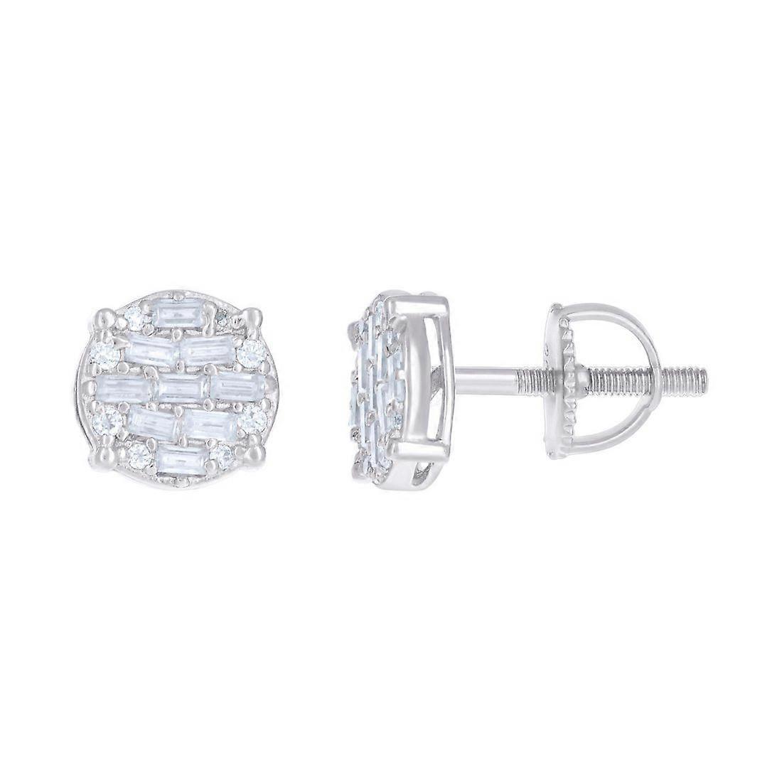 925 Sterling Silver Womens 0.08ct Round 0.5ct Baguette Moissanite Fashion Stud Earrings - Measures 7.6x7.6mm Wide - 1.6 Grams In Sterling Silver - - [ Potential Enhancement Methods: moissanite ] - Grown in a laboratory. Natural gems typically have inclusions from the crystallization process, where gases and other minerals mix during the molten stage of stone creation. Lab-created stones rely on a steady, controlled process of applying minerals, heat and pressure, and they usually have few inc - [ Care and Handling: moissanite ] - Avoid strong detergents, heat, pressure and ultrasonic cleaner or steamer. Avoid re-polishing or re-cutting of the stone. Color may fade in light or with heat. Clean with warm soapy water and a soft brush or cloth. -