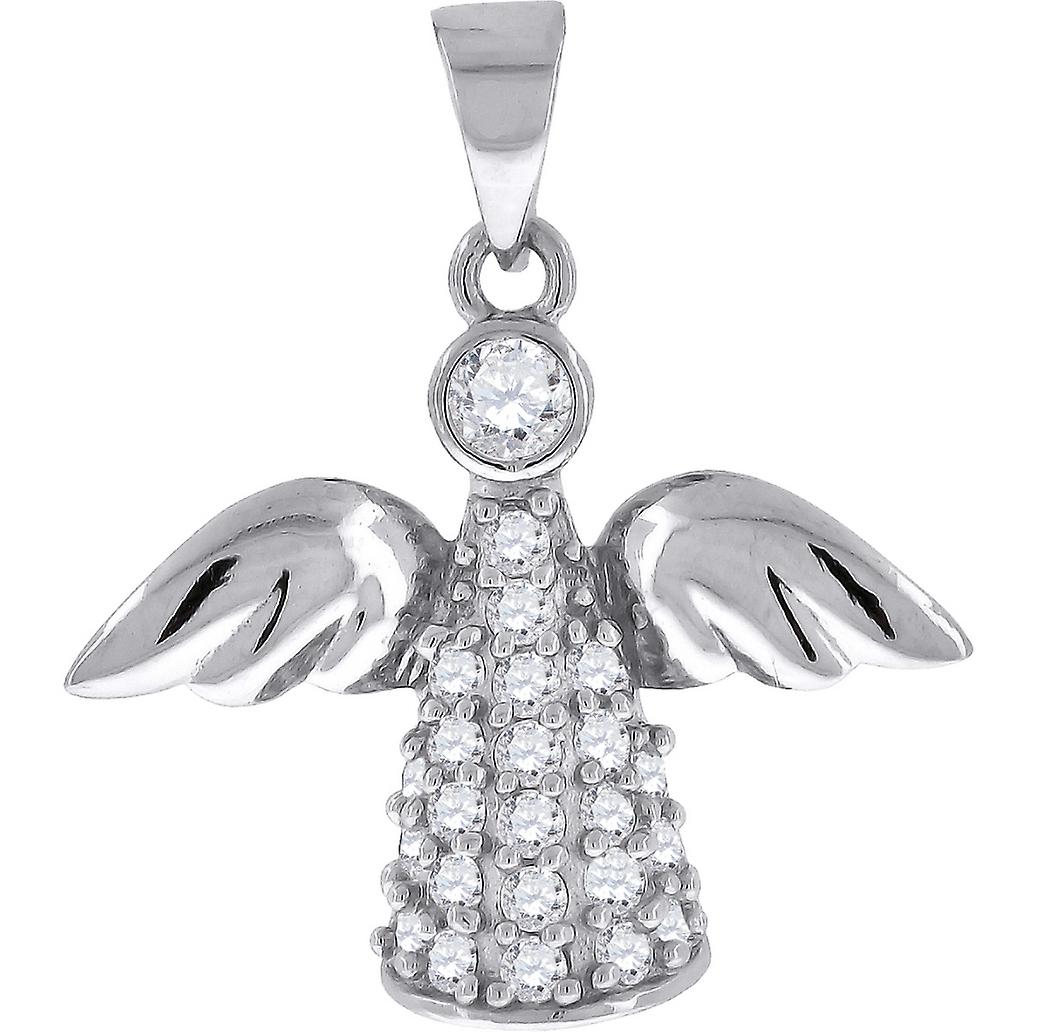 925 Sterling Silver Womens Cubic Zirconia Angel Wings Cone Shaped Pendant Charm - Measures 24.3x21.4mm Wide - 2.1 Grams In Sterling Silver - - This Item Does Not Ship With a Chain - [ Potential Enhancement Methods: cubic zirconia ] - Synthetic. Some are covered with a product that makes the stone more durable. - [ Care and Handling: cubic zirconia ] - Clean with warm soapy water and a soft cloth. -