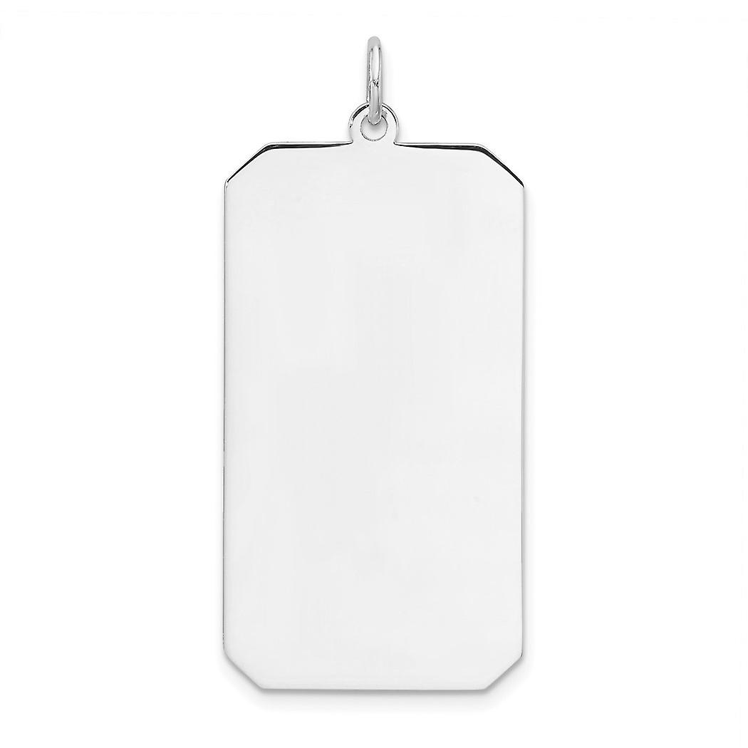 925 Sterling Silver Rhodium Plate Engravable Rectangular Polish Front Satin Back Disc Charm 40.75x19mm Wide 0.7mm Thick