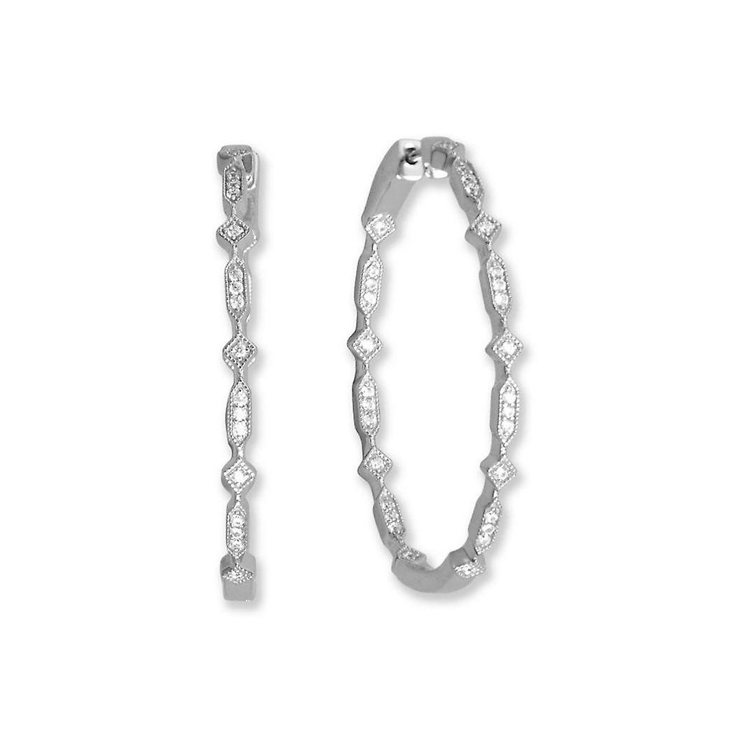 925 Sterling Silver Rhodium Plated in Out CZ Diamond and Elongated Hexagon Hoop Earrings Hoops Have a Pattern-Hoop Earri