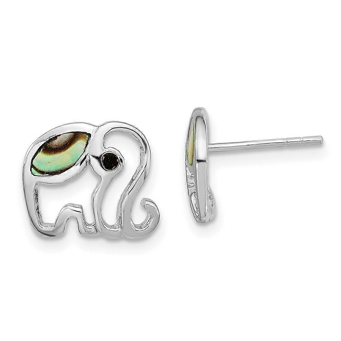 11.75mm Sterling Silver Rhodium-plated Abalone Elephant Post Earrings - Measures 10.7x11.75mm Wide - 1.6 Grams In Sterling Silver in Plated Metal - - Width of Item: 11.75 mm - Length of Item: 10.7 mm - Earring Closure: Post & Push Back - Earring Type: Button - Finish: Polished - - [ Potential Enhancement Methods: Abalone ] - Dyed, coated or bleached to improve and deepen color. - [ Care and Handling: Abalone ] - Avoid chemicals and do not use ultrasonic cleaner or steamer. Clean with warm soapy water and a soft brush or cloth. -