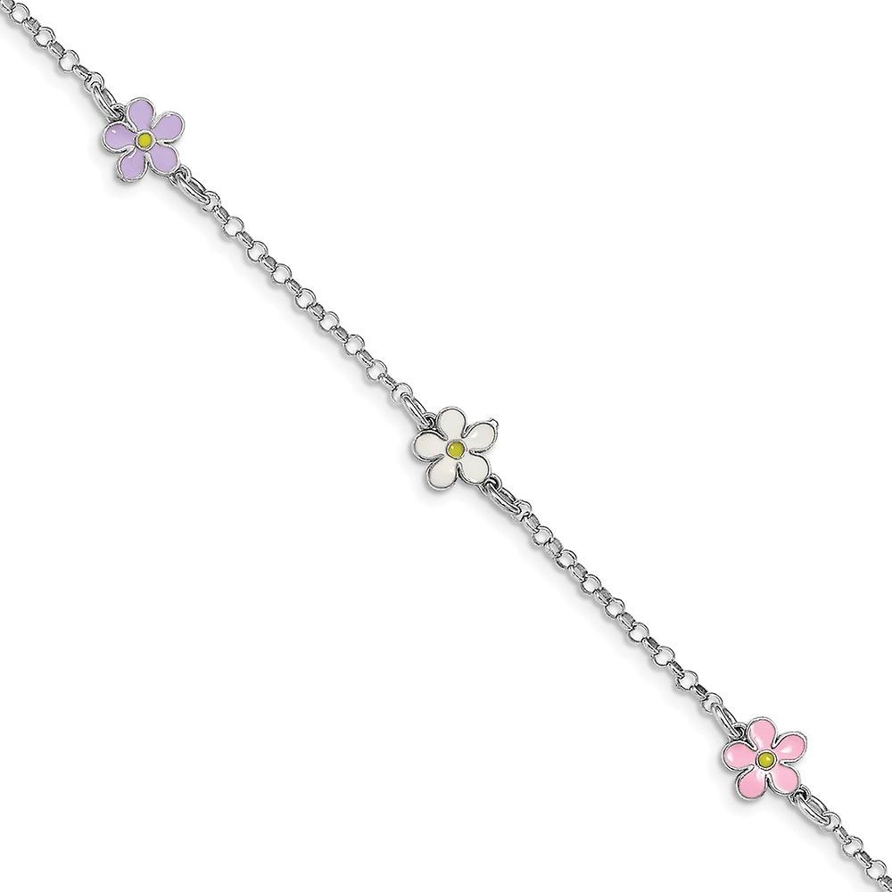 925 Sterling Silver Rhodium Plated Enameled Flower With .75 In Ext Bracelet 6.25 Inch 1.95mm Wide Link-Bracelet for Wome