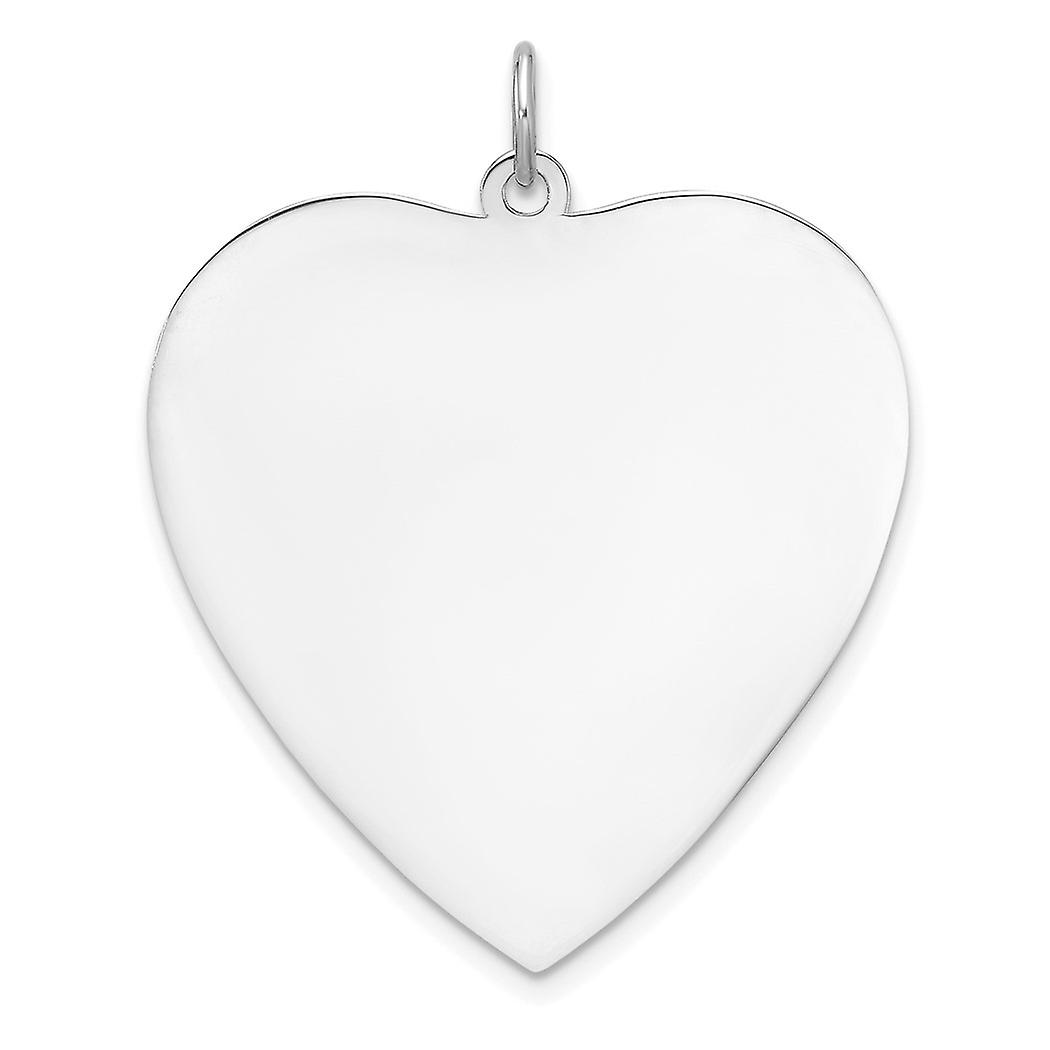 925 Sterling Silver Rhodium Plated Eng. Love Heart Polish Front Satin Back Disc Charm 35.7x29.3mm Wide 0.7mm Thick Penda