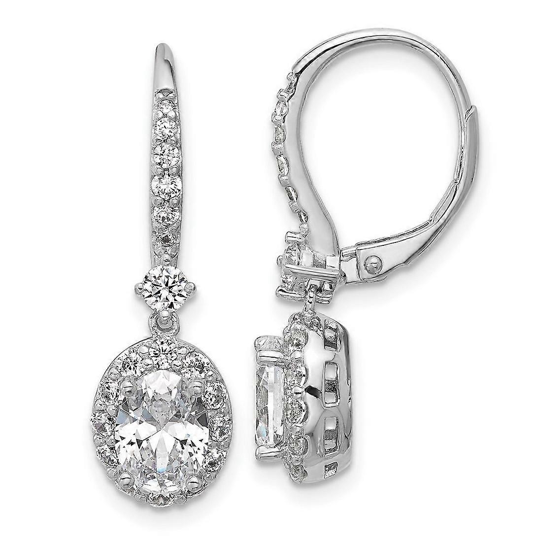 925 Sterling Silver Rhodium Plated Oval Cubic Zirconia Halo Dangle Leverback Earrings 27.75x8.4mm Wide-Dangle Earring fo