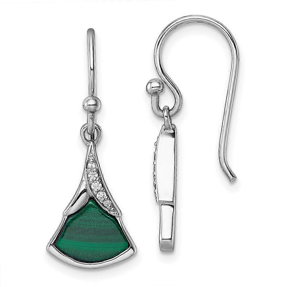 9.9mm Sterling Silver Rhodium-plated Cubic Zirconia and Malachite Dangle Earrings - Measures 27.4x9.9mm Wide - 2.6 Grams In Sterling Silver in Plated Metal - - Width of Item: 9.9 mm - Length of Item: 27.4 mm - Earring Closure: French Wire - Earring Type: Drop & Dangle - Finish: Polished - - [ Potential Enhancement Methods: cubic zirconia ] - Synthetic. Some are covered with a product that makes the stone more durable. - [ Care and Handling: cubic zirconia ] - Clean with warm soapy water and a soft cloth. - - [ Potential Enhancement Methods: malachite ] - Occasionally infused with wax or epoxy to enhance durability and appearance. - [ Care and Handling: malachite ] - Avoid chemicals, steam and ultrasonic cleaning. -