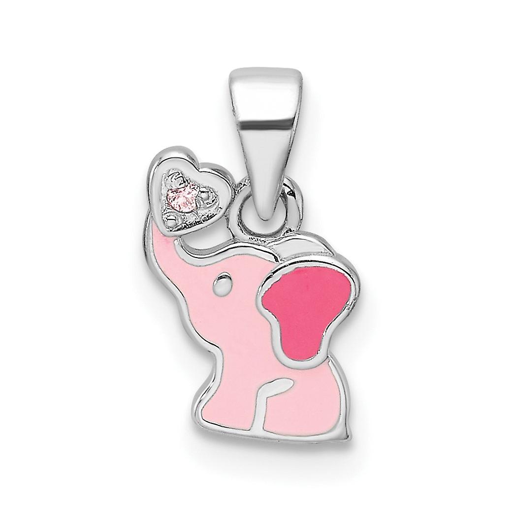 925 Sterling Silver Rhodium Plated Cubic Zirconia Enamel Elephant Pendant Necklace 13.6x8mm Wide 1.8mm Thick-Pendant