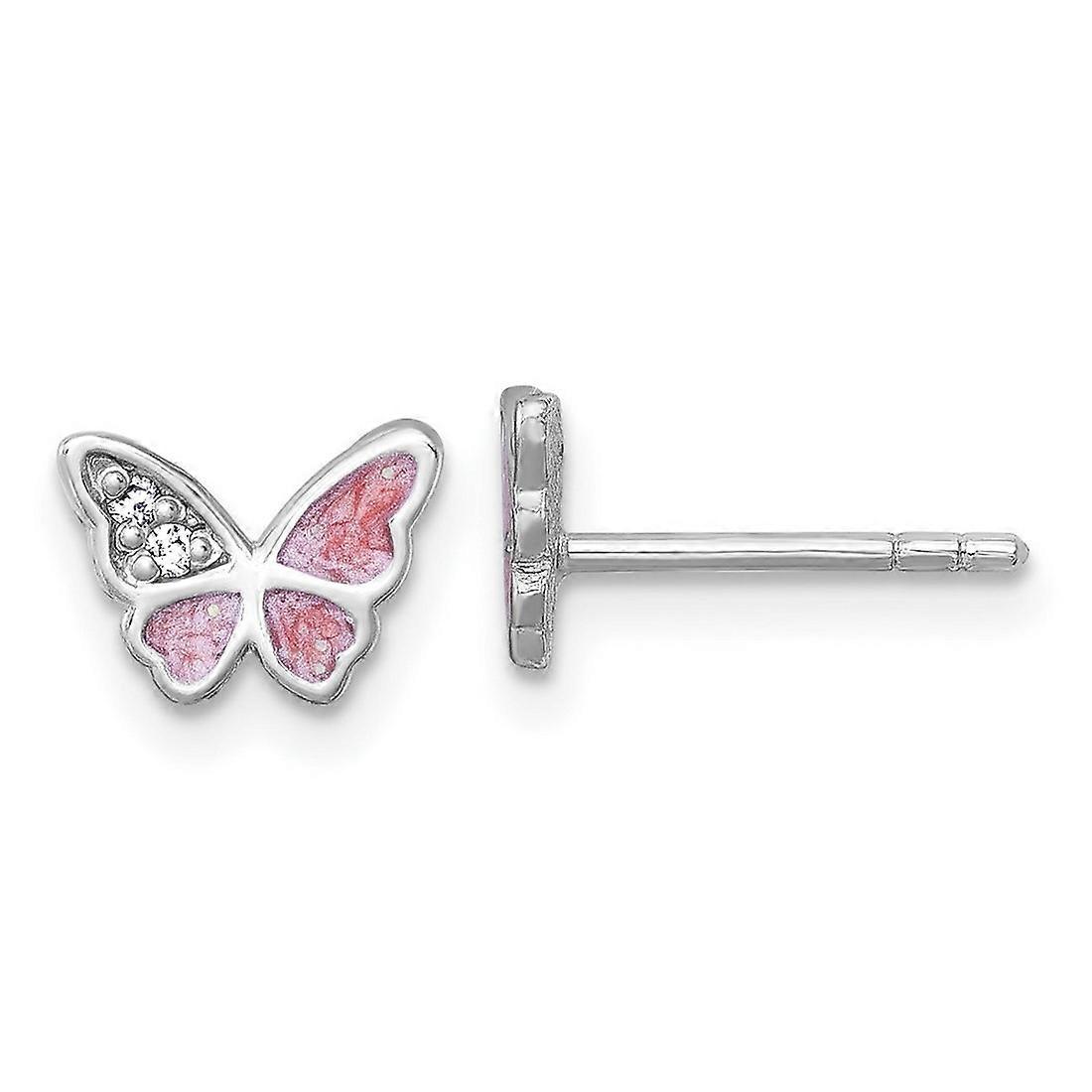 925 Sterling Silver Rhodium Plated Cubic Zirconia Enamel Pink Butterfly Angel Wings Post Earrings 6.6x8.9mm Wide Stud Ea