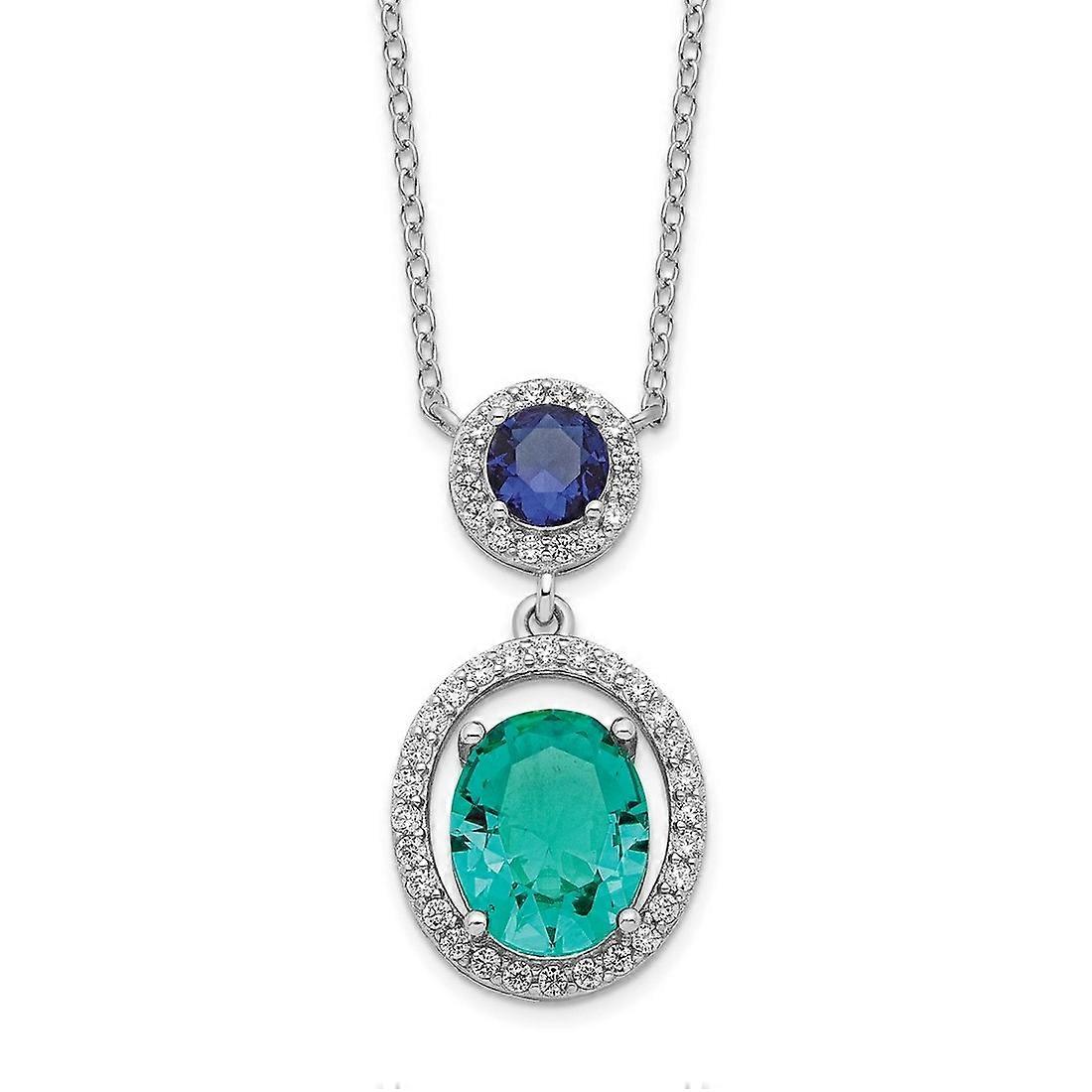 925 Sterling Silver Rhodium Plated Cubic Zirconia Glass Stone Dangle Pendant Necklace 18 Inch-Pendant for Women