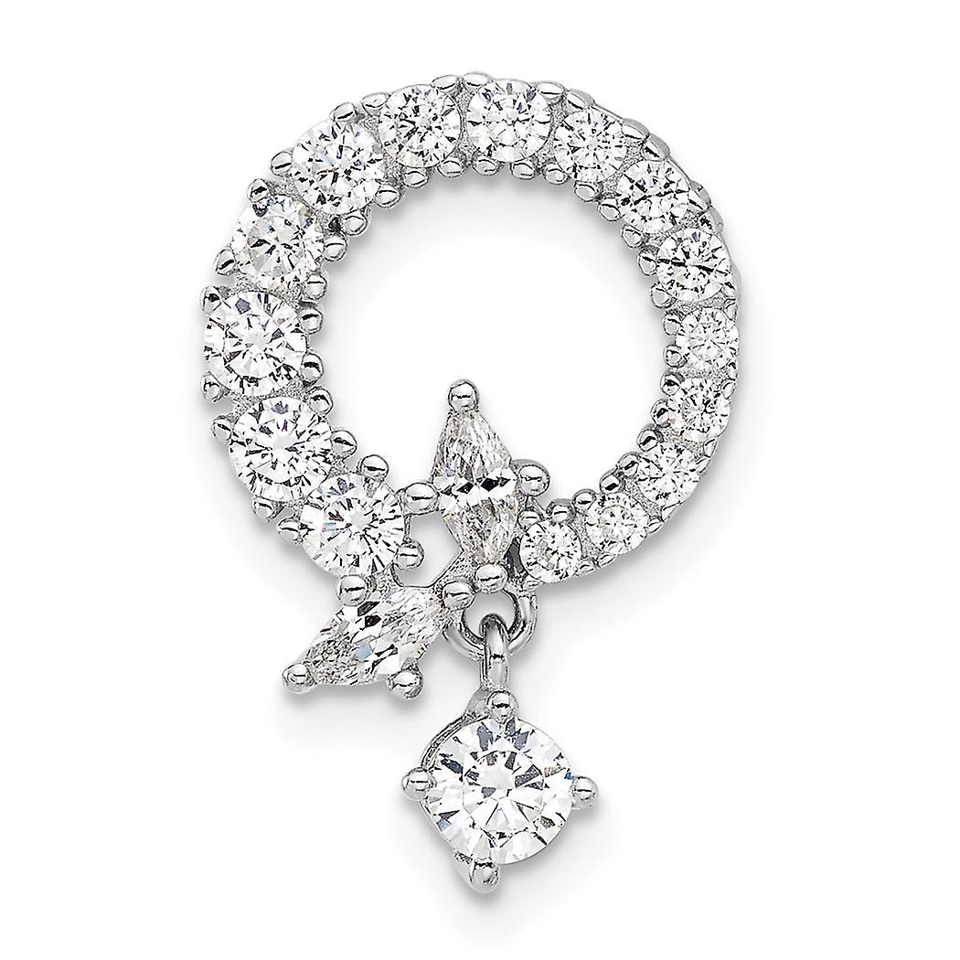 925 Sterling Silver Rhodium Plated Cubic Zirconia Circle Chain Slide Pendant 18.2x13.2mm Wide 3.3mm Thick Chain Necklace