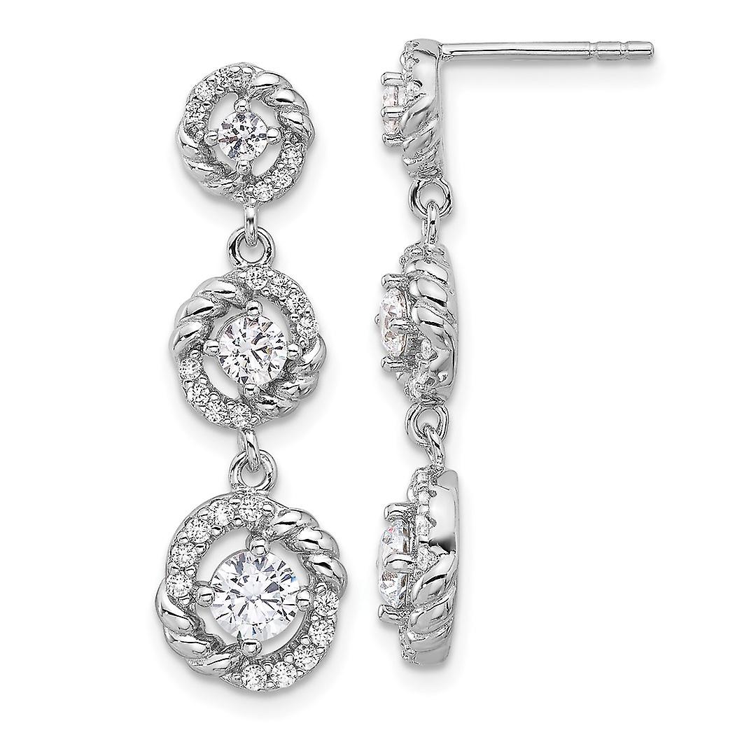 925 Sterling Silver Rhodium Plated Cubic Zirconia Dangle Post Earrings 30.7x9.5mm Wide-Dangle Earring for Women