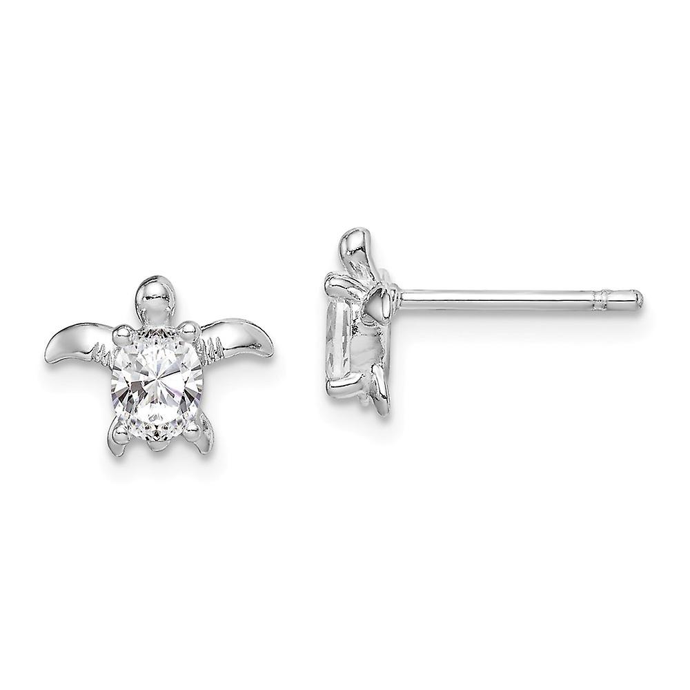 925 Sterling Silver Rhodium Plated Cubic Zirconia Turtle Post Earrings 7.72x10.11mm Wide Stud Earring for Women