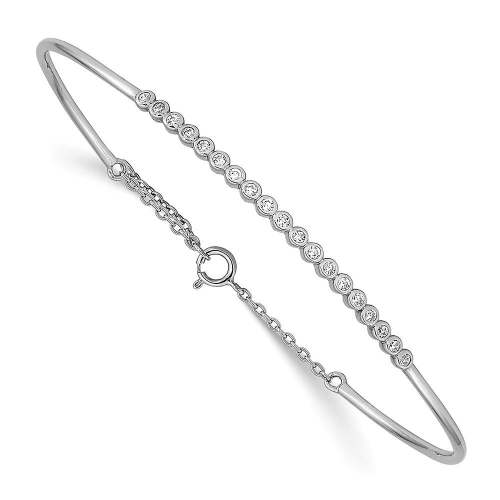 925 Sterling Silver Rhodium Plated Cubic Zirconia Bangle Bracelet With Safety Chain 2.36mm Wide Cuff-Bracelet